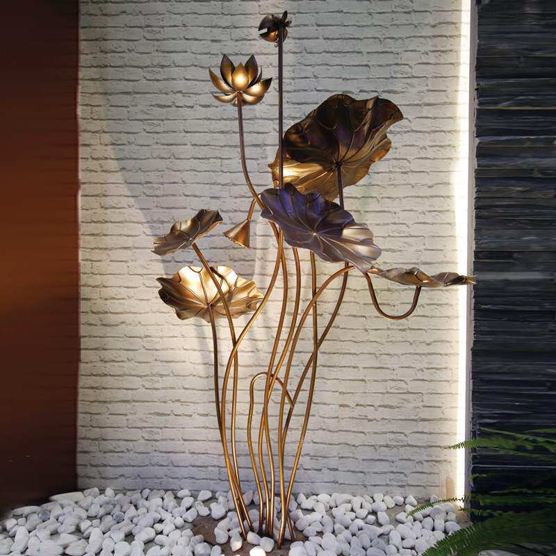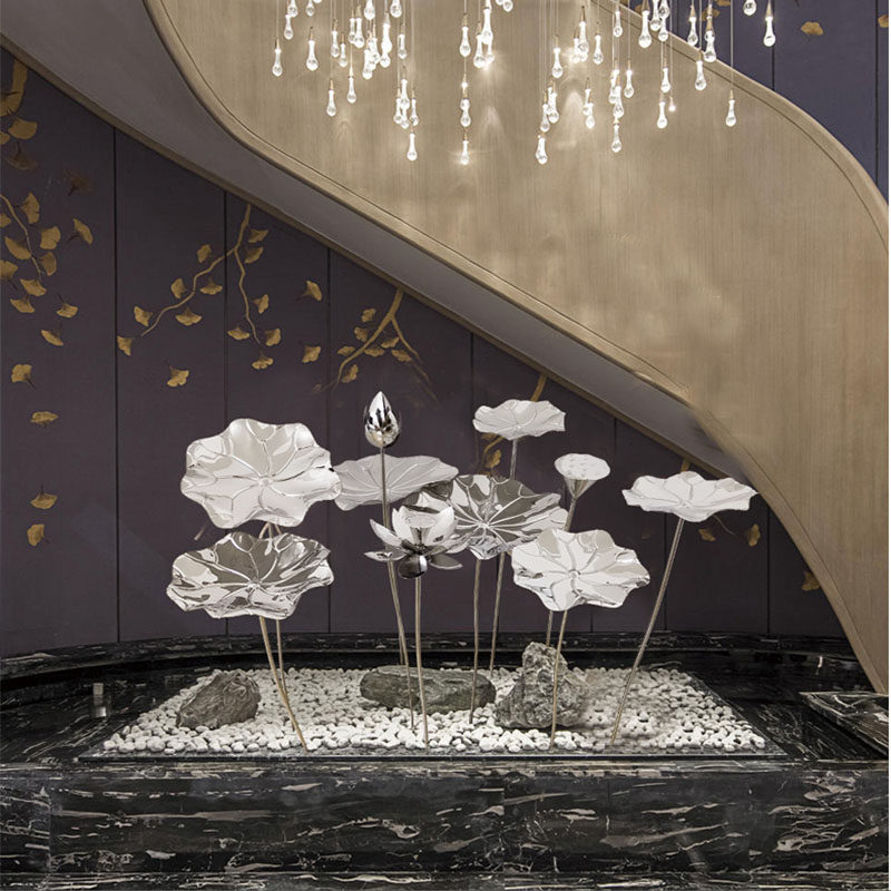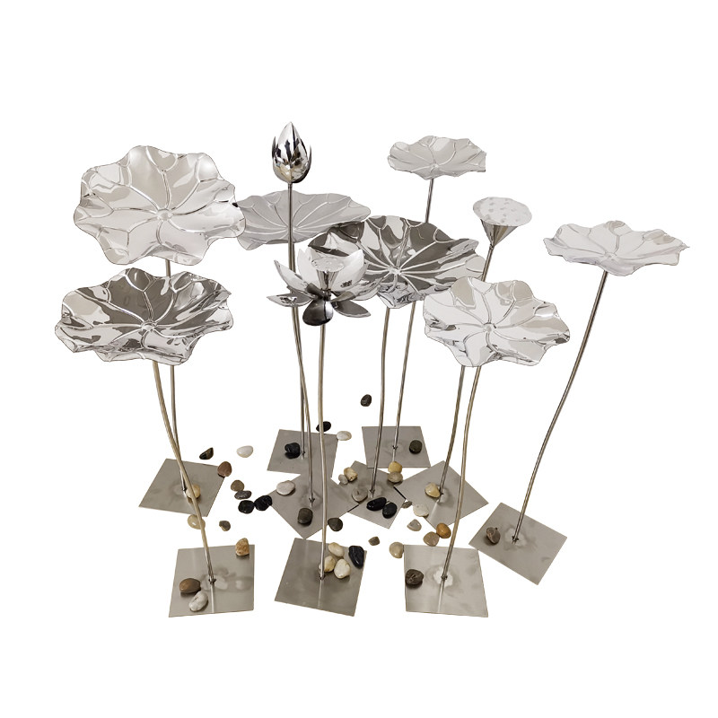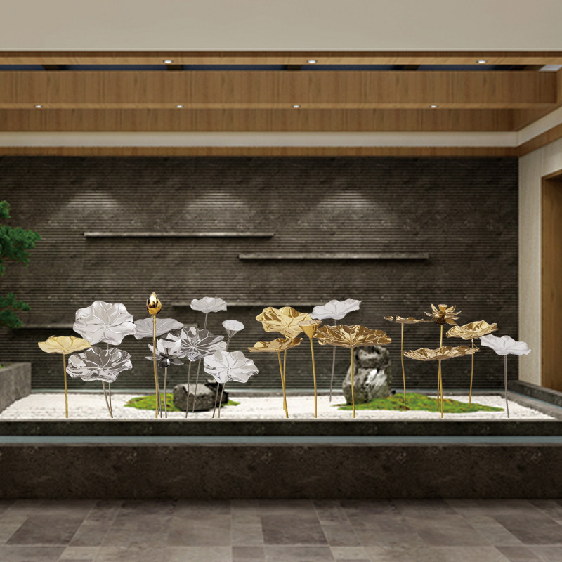 Stainless Steel Lotus Flower Sculpture Antique Swing Piece Hotel Soft-mounted Outdoor Pool Iron Art Lotus Leaf Floor Metal Adornment