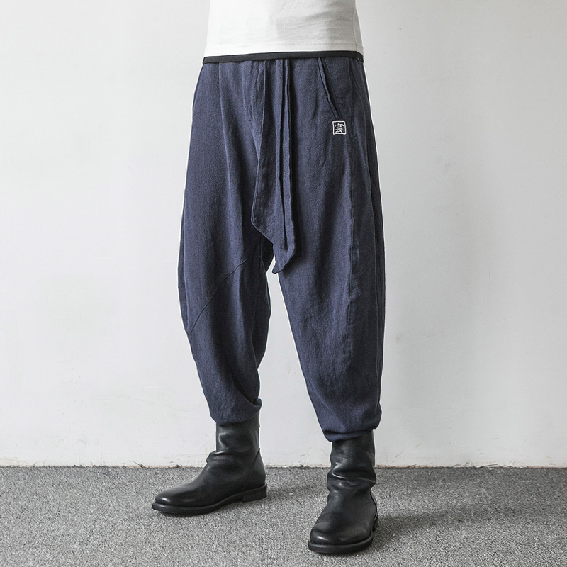 Chinese Style Men's Pants Autumn Loose Linen Pants Men's Cotton Linen Casual Pants Retro Harem Pants Large Size Long Pants