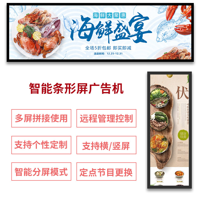 17 19 22 - inch bar screen advertising machine bus subway car loaded LCD long - bar network screen HD poster screen