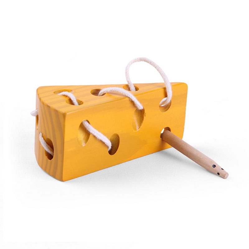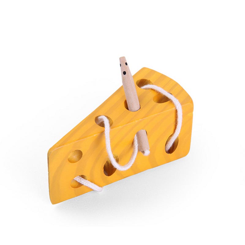 ToyWoo young children early education toy mouse wearing cheese wooden baby puzzle threading toy threading game