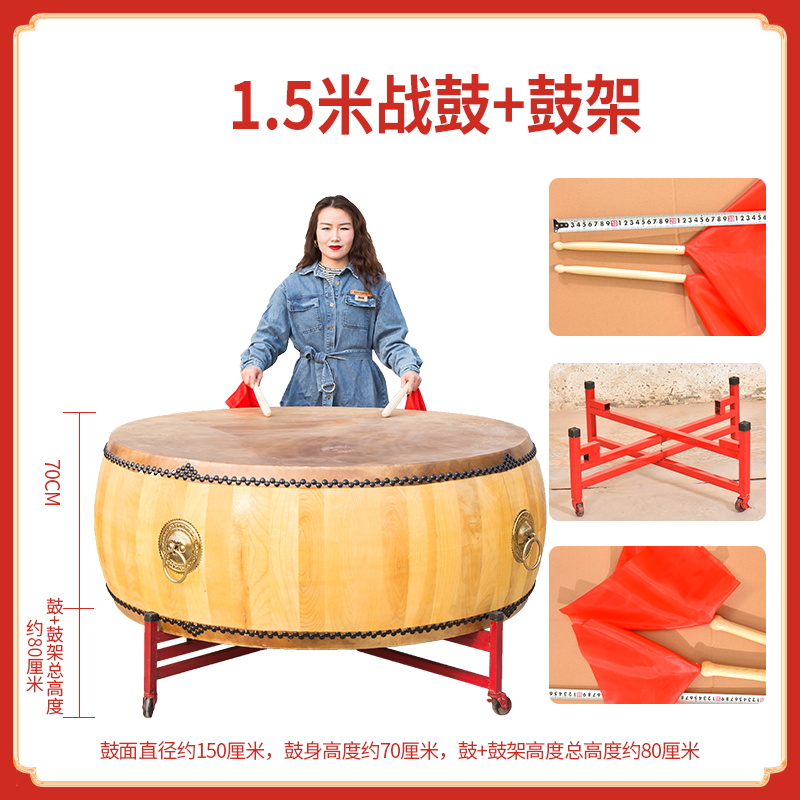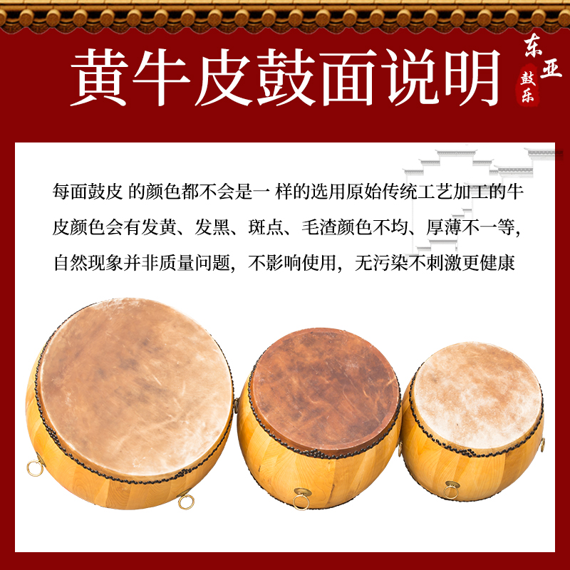 Authentic first layer yellow cowhide drum Tsubaki war drum gong drum hall drum Taoist drum white stubble drum twisting song big drum cowhide drum