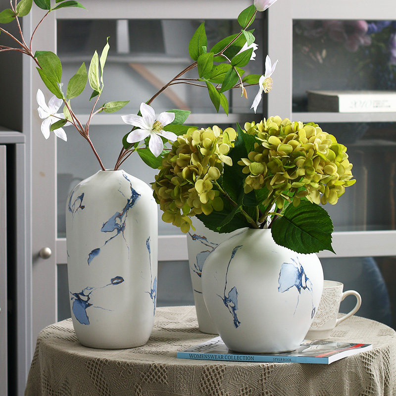 Clear soup lying fruit vase three-piece ceramic light luxury style modern minimalist living room decoration ornaments flower arrangement