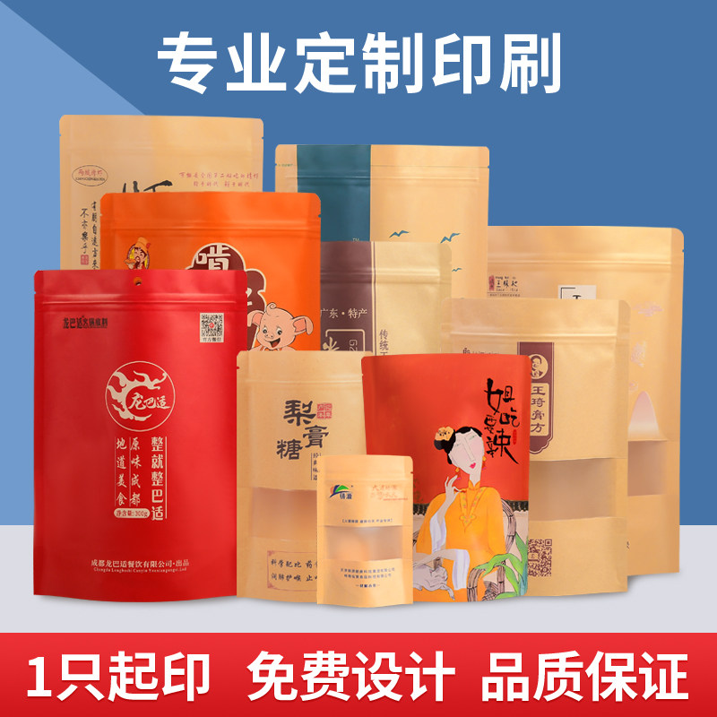 Kraft Paper Bag Self-proclaimed Bag Tea Seal Bag Zero Food Items Packing Bag Closure Bag Snack dry fruit bag Custom printing-Taobao
