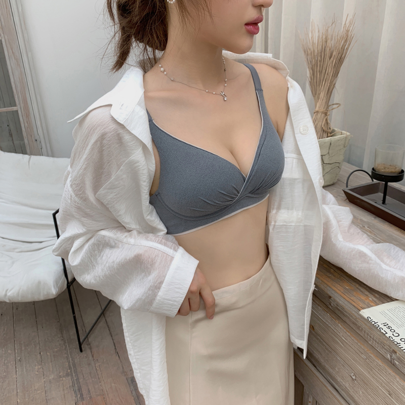 Ho Yungtau Little Bra Bride Closed and Thick Steel-free Back Fabric Bra Set