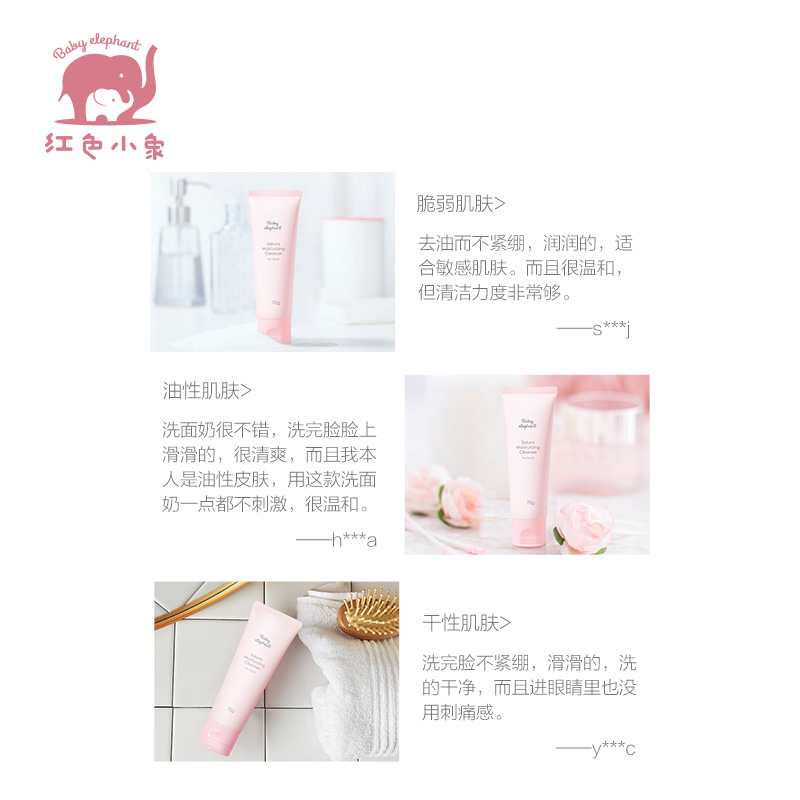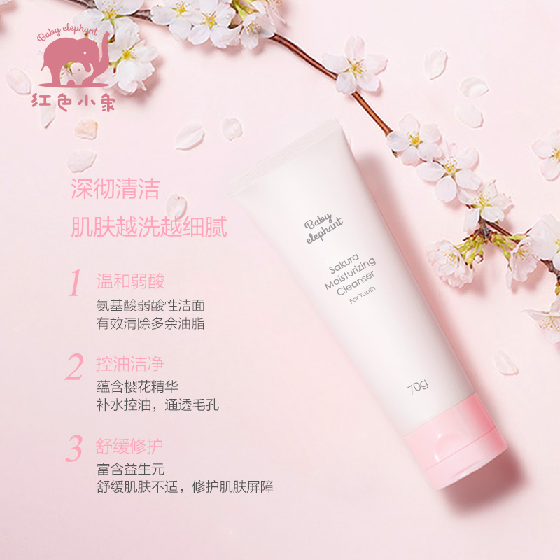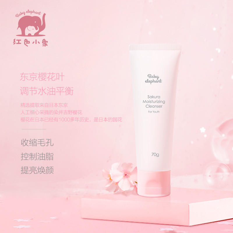 Red small elephant child washout milky 12 year old female baby special cherry blossom moisturizing foam washed face cream