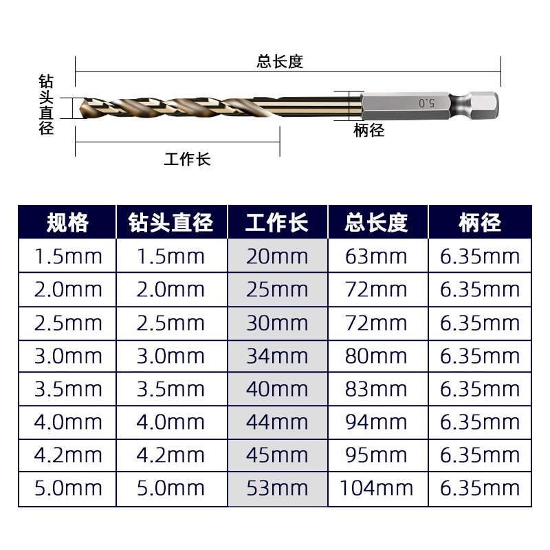 Hexagonal Handle Twist Drill Bit six-prismatic perforated stainless steel straight shank lengthened swivel head 3mm with shank drill tip pneumatic screwdriver 6 corner square