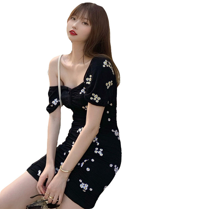 The new summer women's dress of 2021 is a big size black dress with a waist to show thin temperament