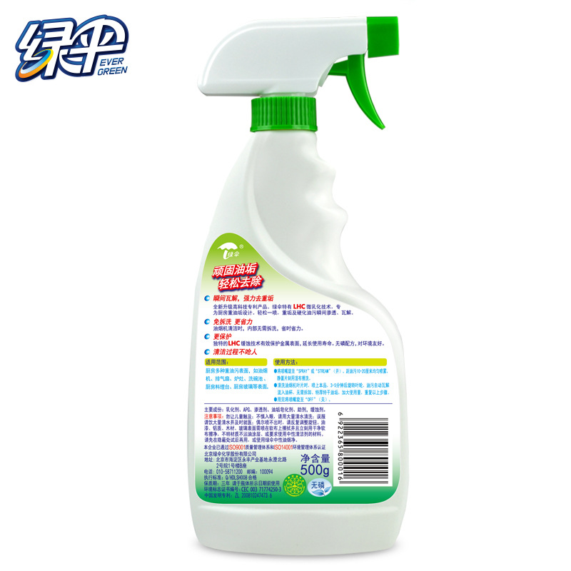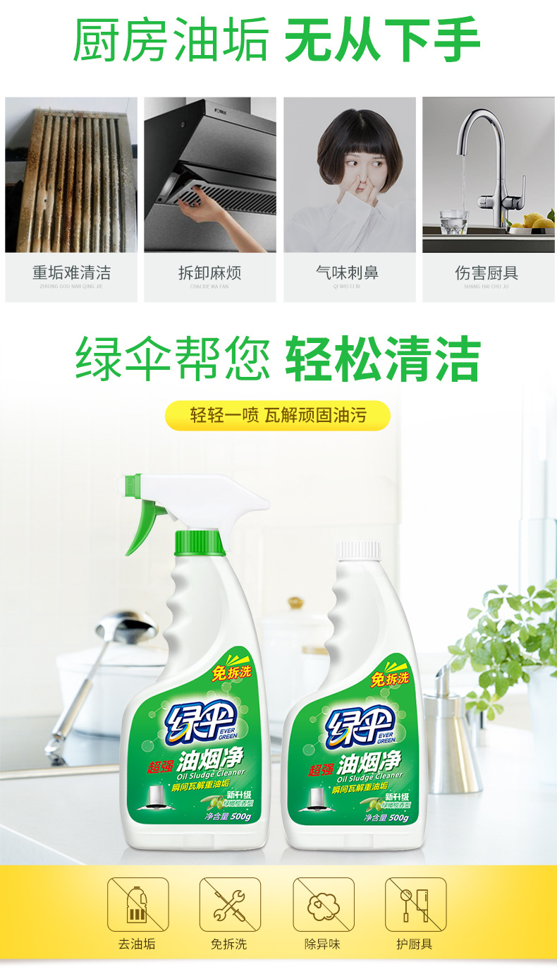 Green umbrella oil smoke net 500g spray cleaning agent 2 bottles free of demolition and super strong to oil stain clean kitchen glass clear