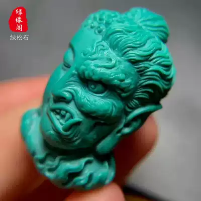 Hubei natural raw ore high porcelain turquoise Pendant between one thought and one thought into magic carving pendant pendant pendant