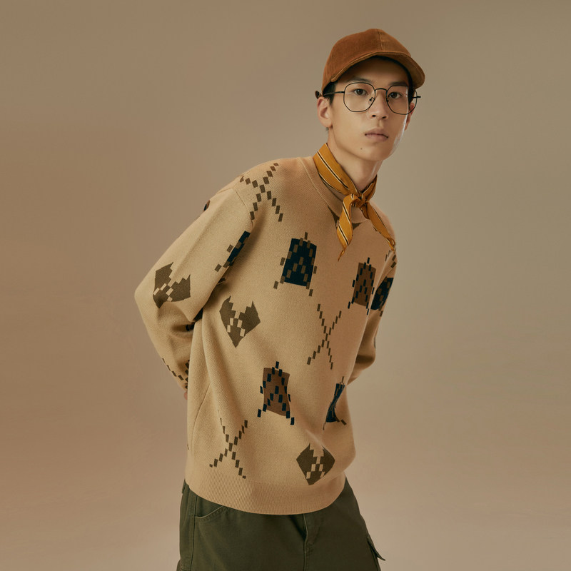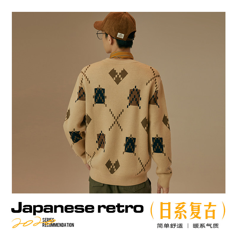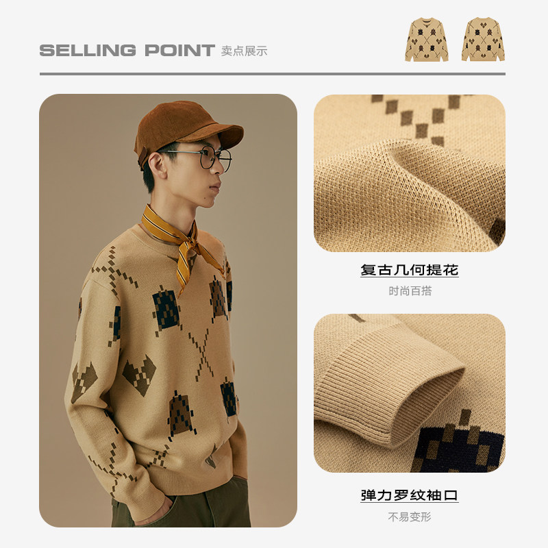 GXG Men's Clothing Day Ensemble Retro Geometric Jacquard Card Its Color Couples Sweatshirt Hooded Sweatshirt Boy 2020 Spring Autumn Heat Sale
