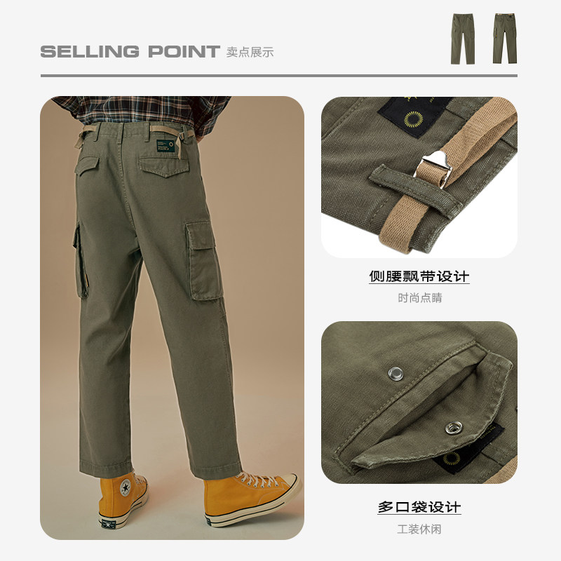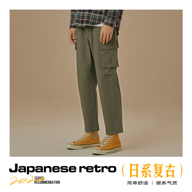 GXG Men's Clothing Day Ensemble Retro Jun Green Straight Cylinder Loose Tooling Denim Pants Long Pants Men 2020 Spring and Autumn Heat