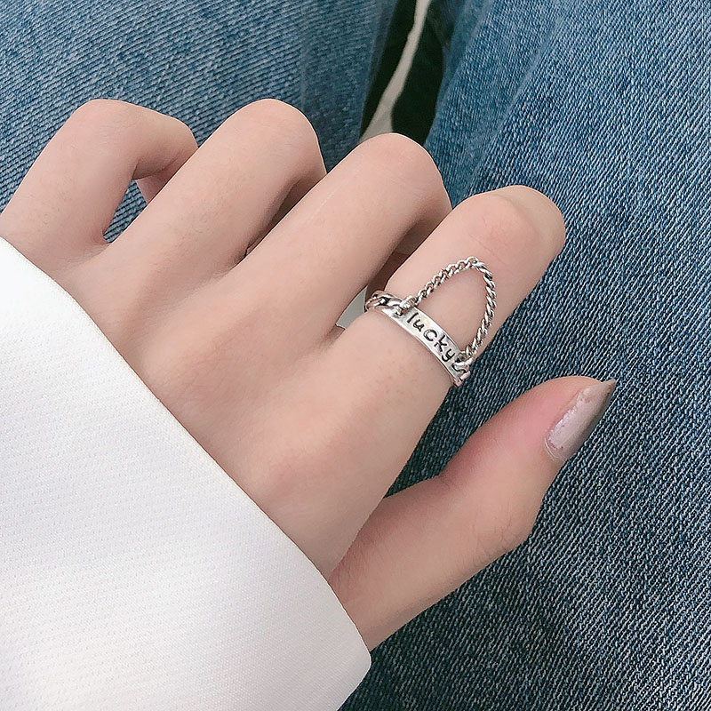 Taisilver Composition Ring Female Niche Design Opening Adjustable Food Ring Lukewarm Craze Ins Retro Pure Silver Ring