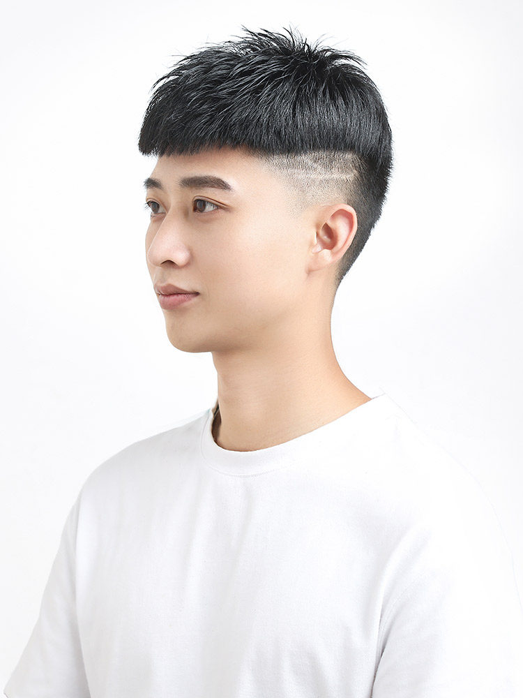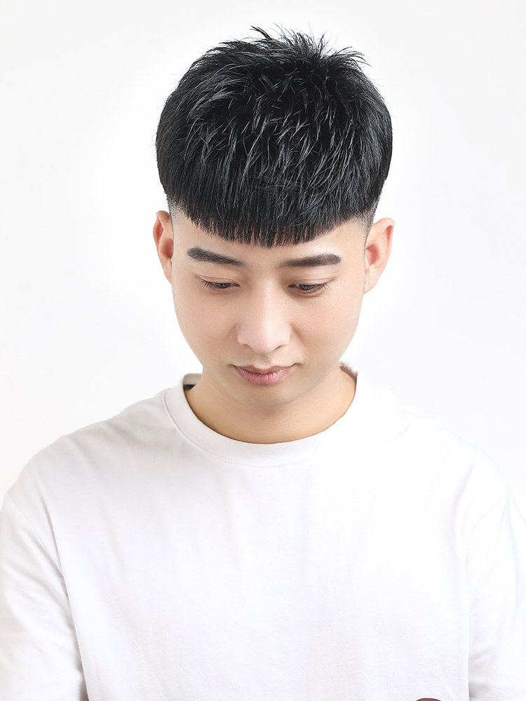 Men's real hair forehead wig piece men's fashion handsome texture short hair wig men's head bald head replacement hair block