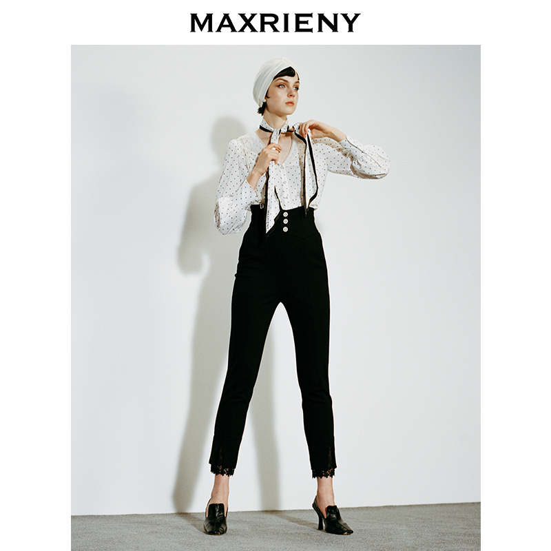 MAXRIENY high waist retro cuddling bag pants women Fall Herbene wind black long pants Body Jeans Foreign Pie Long Pants