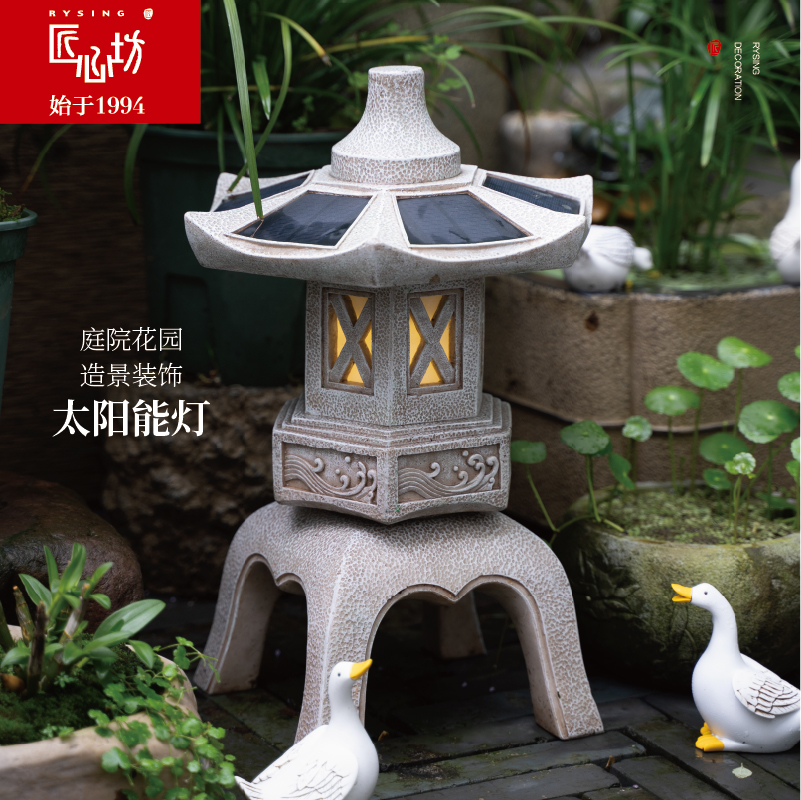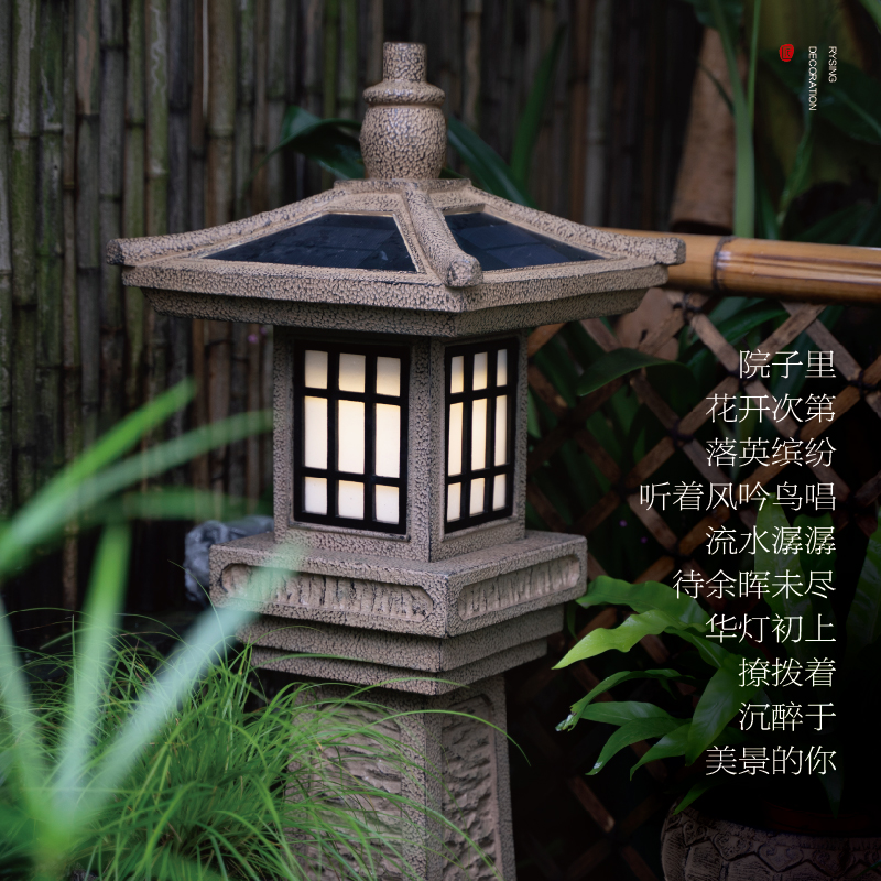 Ingenuity Square Chinese Antique Solar Garden Light Villa Outdoor Light Garden Layout Decoration Retro Landscape Stone Light