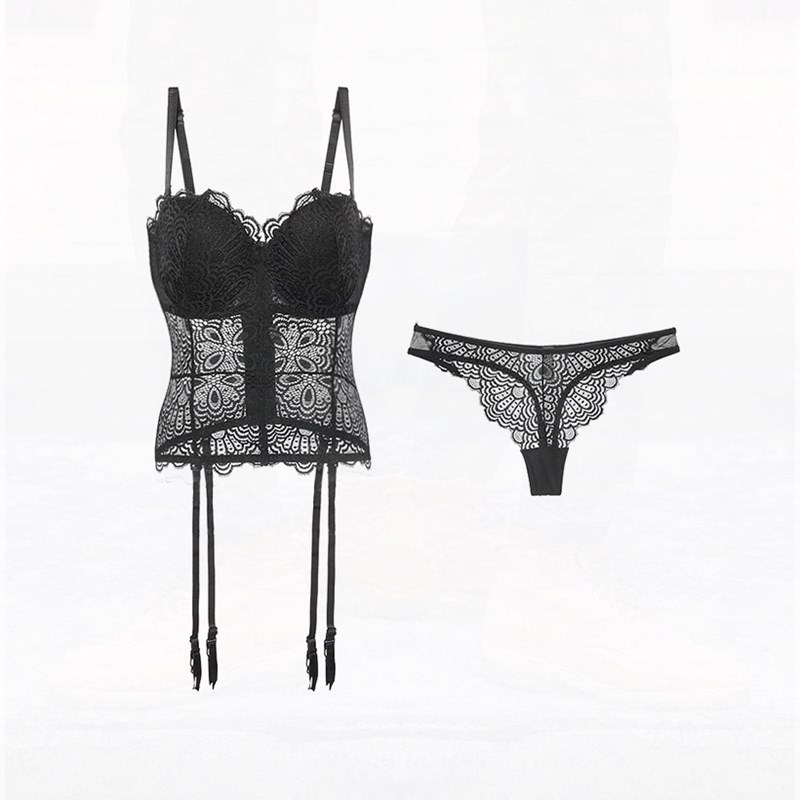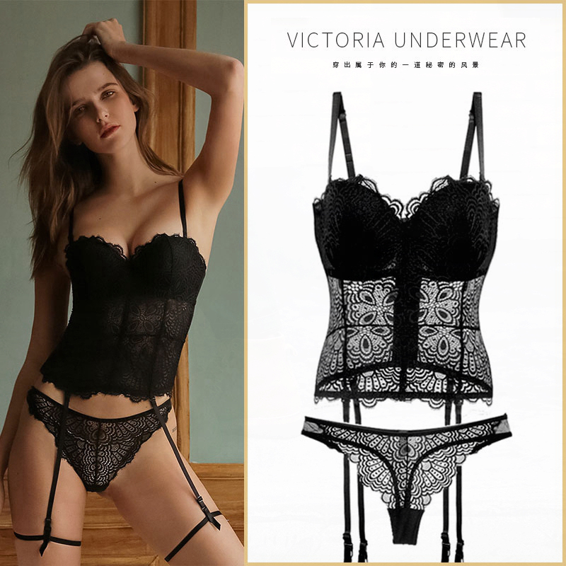 Lace girdle underwear Female sense of deep V bra to close the breast on the small chest to gather the shape of the confusion underwear set