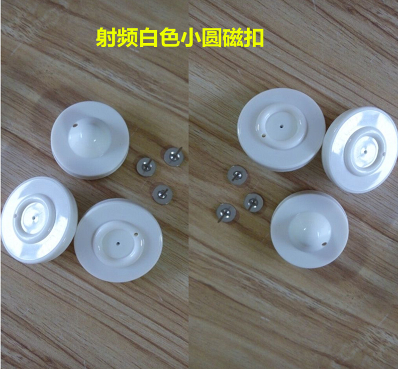 Fengrui An RF white small round magnetic buckle Eccentric round magnetic buckle Clothing clothing door chain buckle hard label
