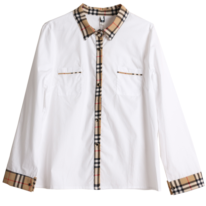 Spring and Autumn Cotton Shirts Plaid Collar Thin Slim White Small Shirts Temperament Versatile Tops Workplace Office Western Style