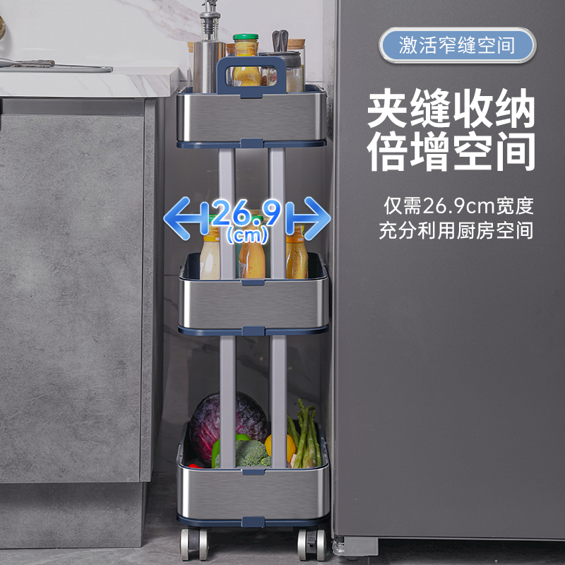 Kitchen rack floor-to-ceiling multi-storey trolley stainless steel vegetable basket word rack with wheels bathroom powder room