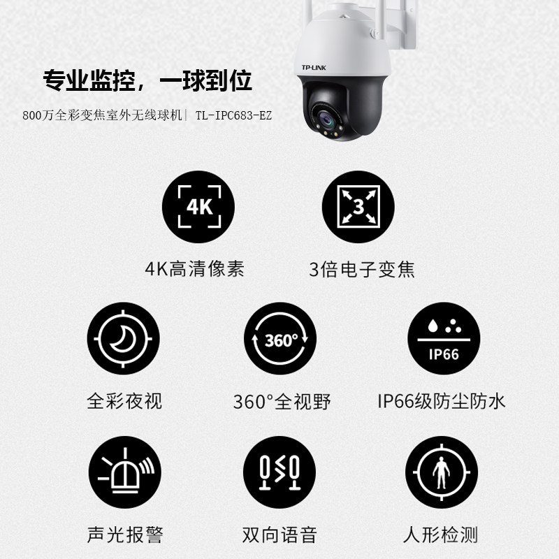 TPLINK 8 million 4K HD surveillance camera lens full color night vision 360 panoramic ultra-clear zoom ball machine outdoor waterproof mobile phone wireless voice intercom recording power outage anti-theft security