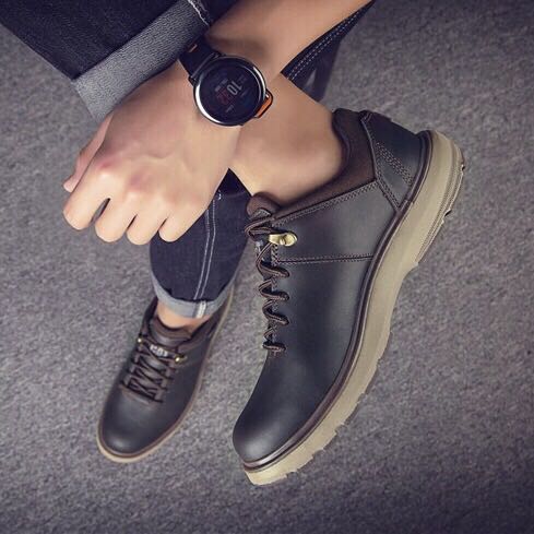 Head Layer Cow Leather Fashion Wear wear travel shoes Men's low Help leather shoes Shoes Shock Absorbing Outdoor Casual Shoes Brown Black
