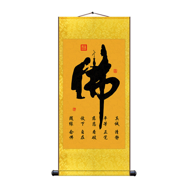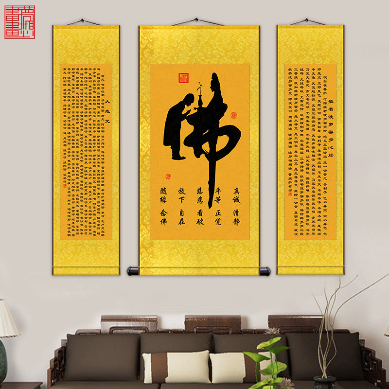 Buddha's calligraphy and painting Great Compassion Mantra Heart Sutra hanging painting five-coupled central hall scroll painting Buddhist hall temple triple decorative mural worship painting