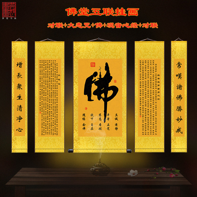 Triple (Great Compassion Mantra Buddha Guanyin Heart Sutra) Five (couplet Great Compassion Mantra Buddha Heart Sutra couplet)