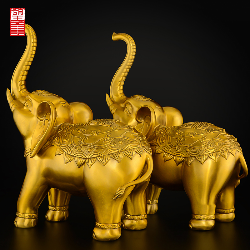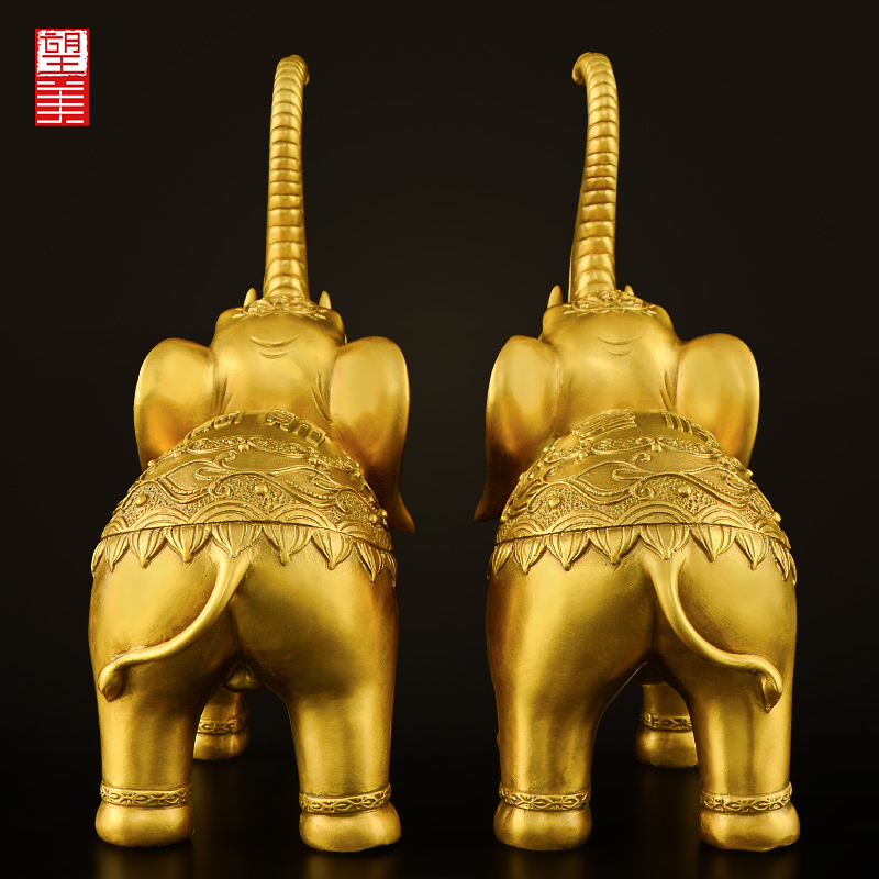 Pure copper elephant pendulum adorned a pair of bronze elephant strokes Living room Xuanguan Caixuan Cairou Grand Bronze Elephant Crafts Gift Hem