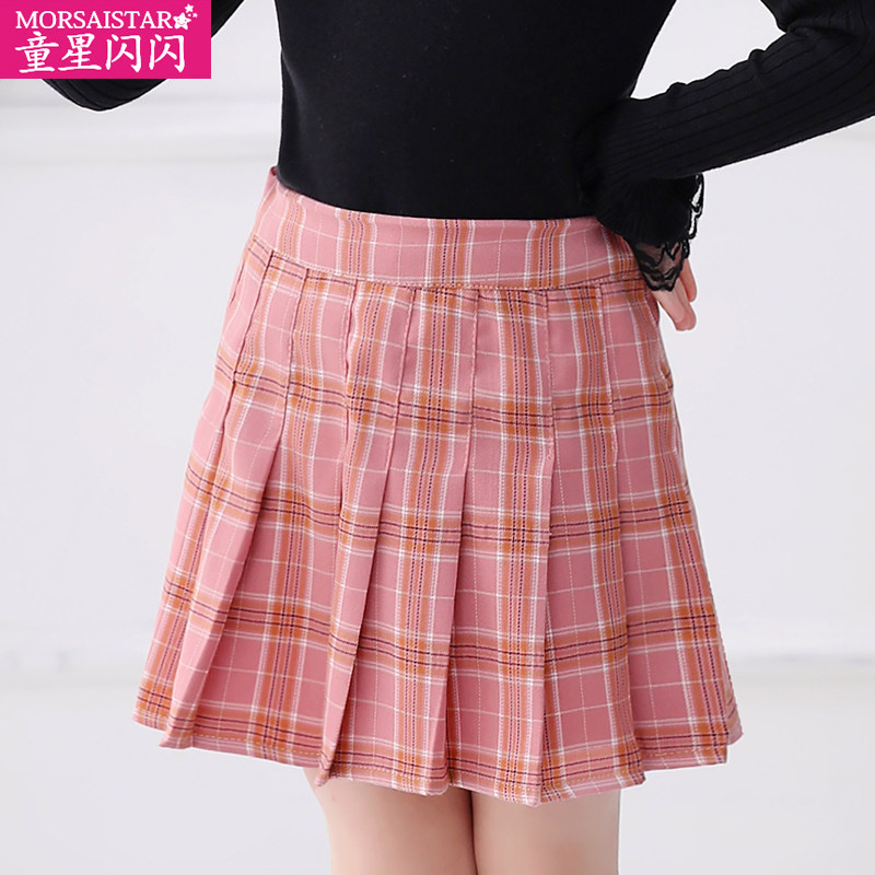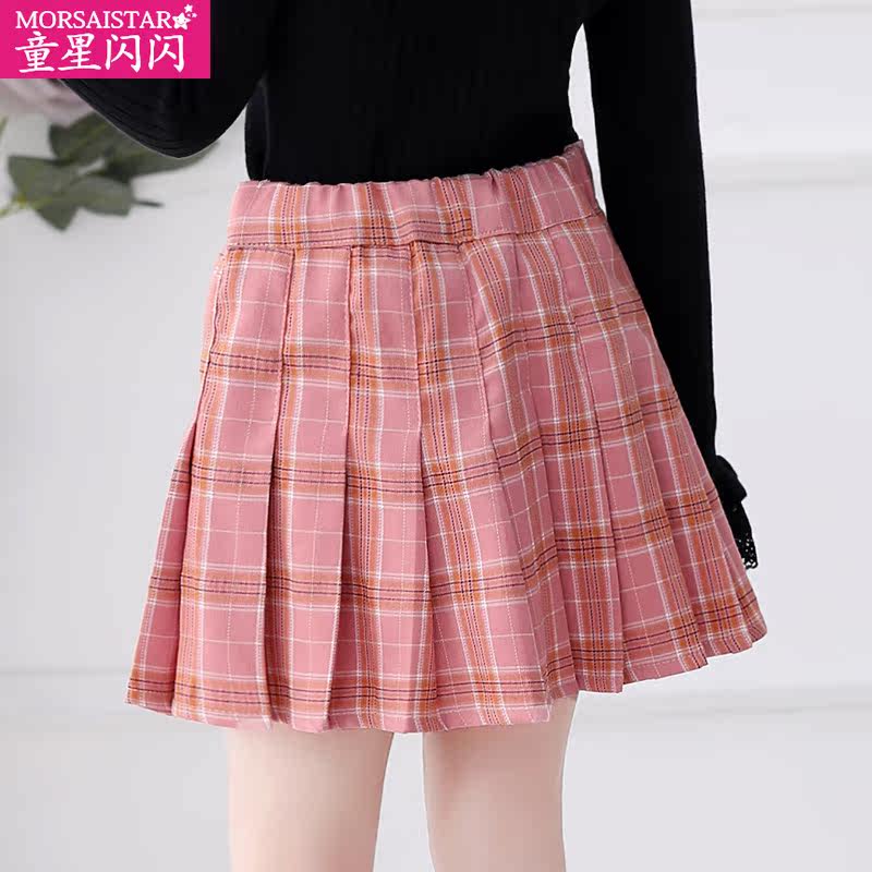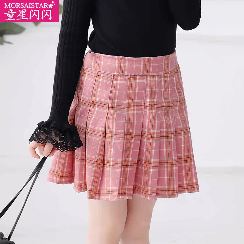 Girl's half-body dress pink plaid plexeme skirt Children's autumn Winter Short skirts Academy wind CUHK Children's spring dress new