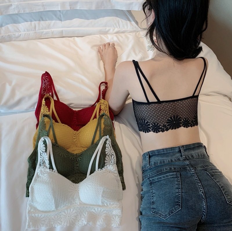 Sexy lace beautiful back camisole female bottoming without steel ring with chest pad one-piece bra gather underwear