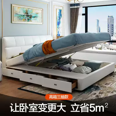 Lafafi leather bed modern minimalist bedroom double bed Master Bedroom 1 8 m drawer storage tatami wedding bed