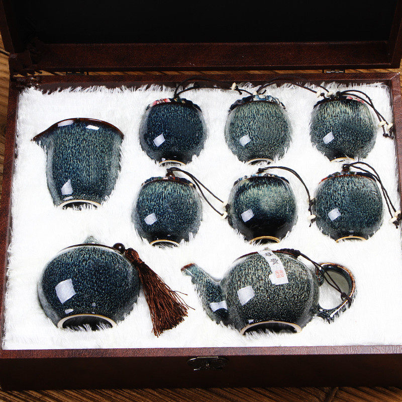 10 pieces of tea set for the tea set of the Tianmu Glaze Jun Kiln