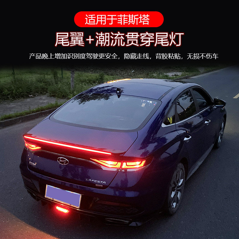 Suitable for modern Festa streamer tail modified sports car wing LED electric flow tail trim free hole