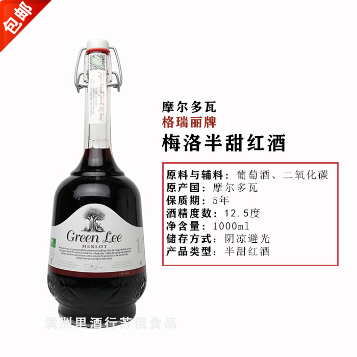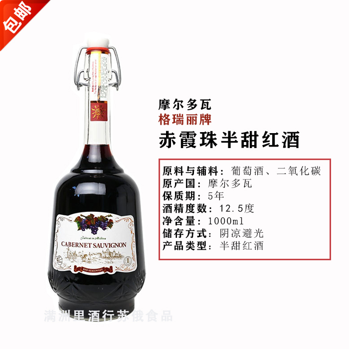 Russia Grui Li Moldovan Semi-Dry Red Wine Red Wine Red Pearl Mello 1000ml12 5 degrees