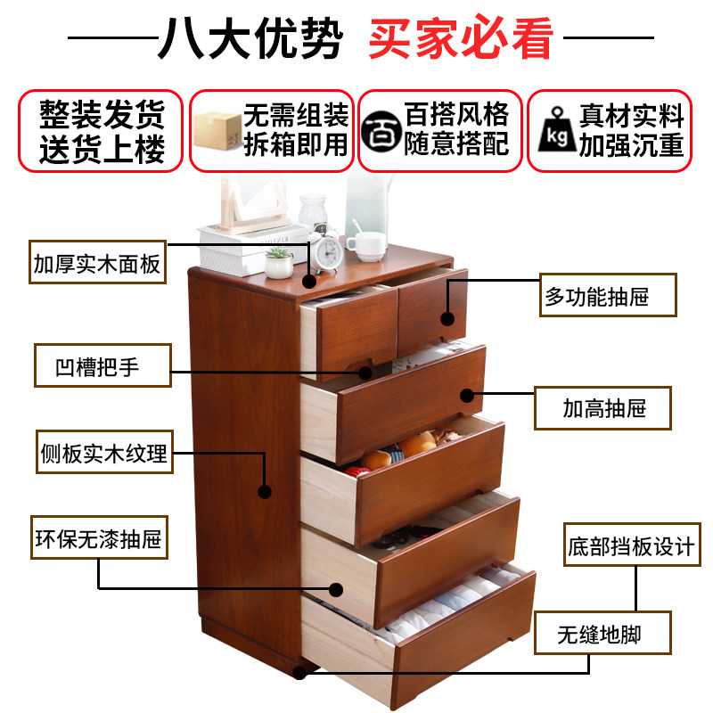 Chest of drawers light luxury drawer type storage cabinet simple modern storage cabinet drawers bedroom American solid wood cabinet