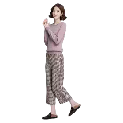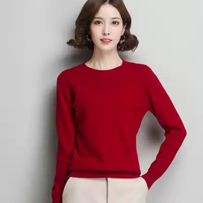 Hengyuanxiang cardigan women's round neck sweater autumn and winter New slim pullover sweater solid color ladies base shirt