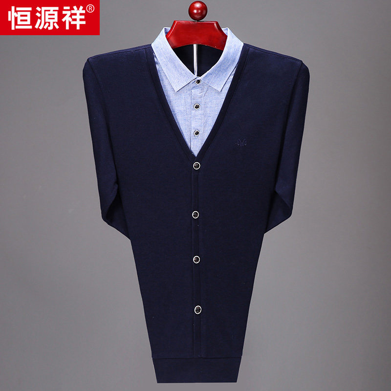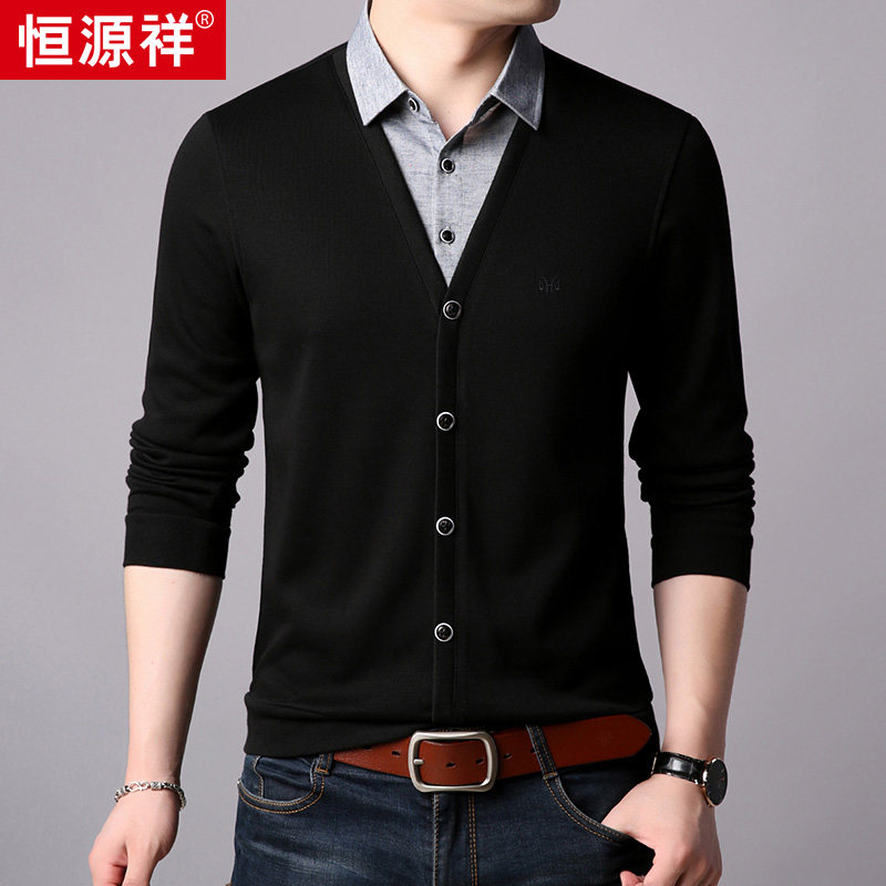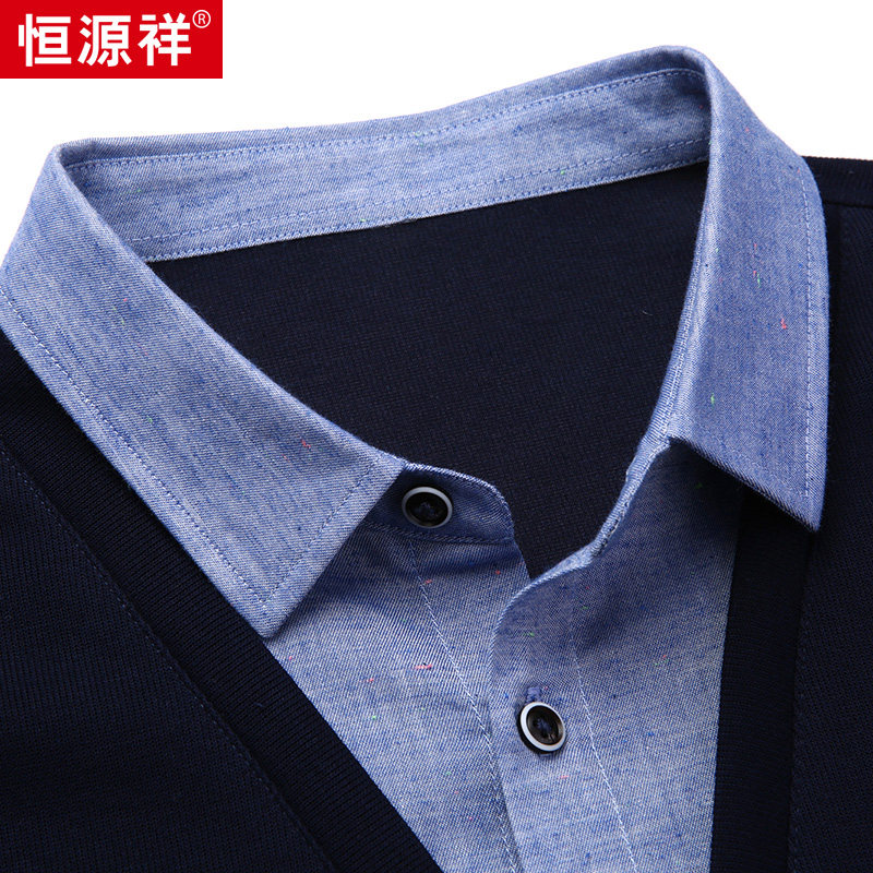 Hengyuanxiang's new men's knitted fake two-piece T-shirt slim fit lapel bottoming shirt shirt collar sweater men's tide