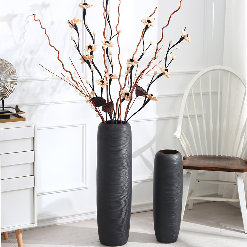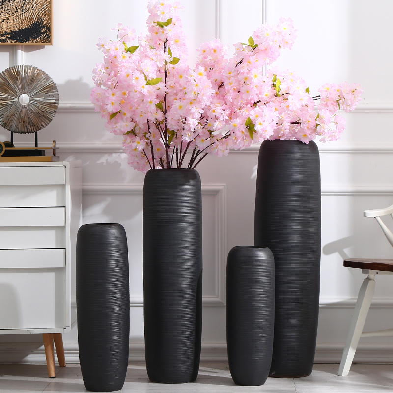 Black floor-to-ceiling vase living room large ceramic dried flower ornaments large European style creative simple dry flower arrangement minimalist