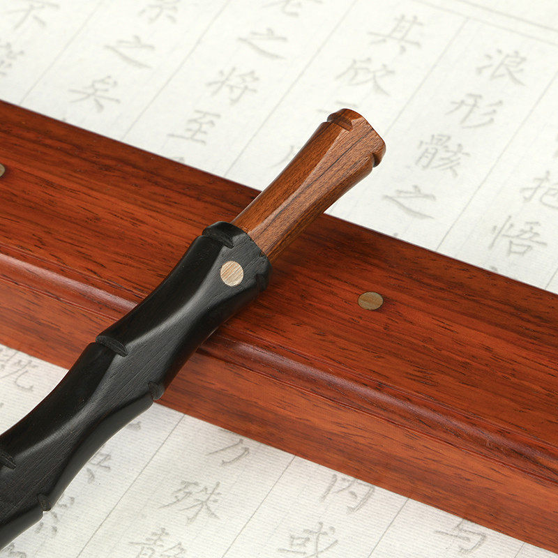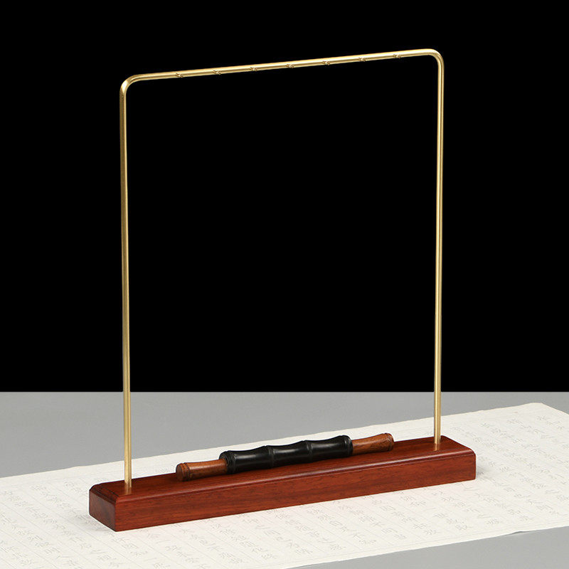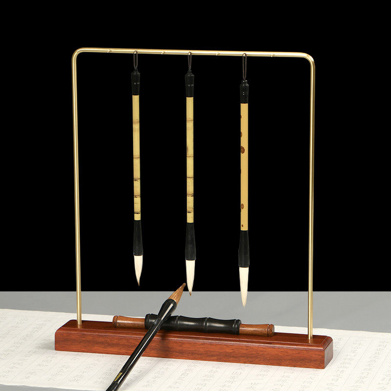 New Chinese red wood brush holder pen hanging solid wood quality creative brass brush pen rack Wenfang Four-treasure calligraphy supplies
