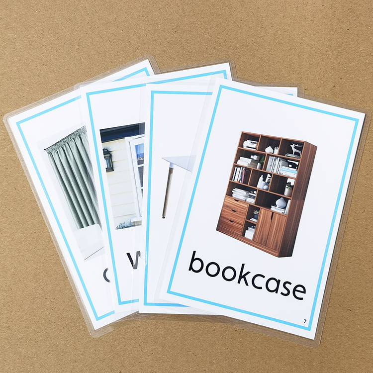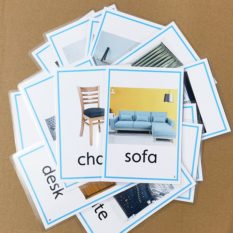 Furniture Daily life Supplies English flashcards 32 types of single word cards Early childhood primary school teachers Colour pattern plastic packaging teaching aids