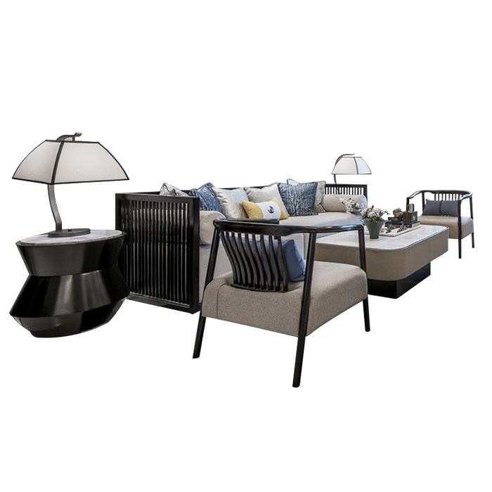 Black (three-seat solid wood sofa) black (two-seat solid wood sofa) black (single-seat solid wood sofa) white (marble solid wood coffee table) black (marble solid wood corner table)