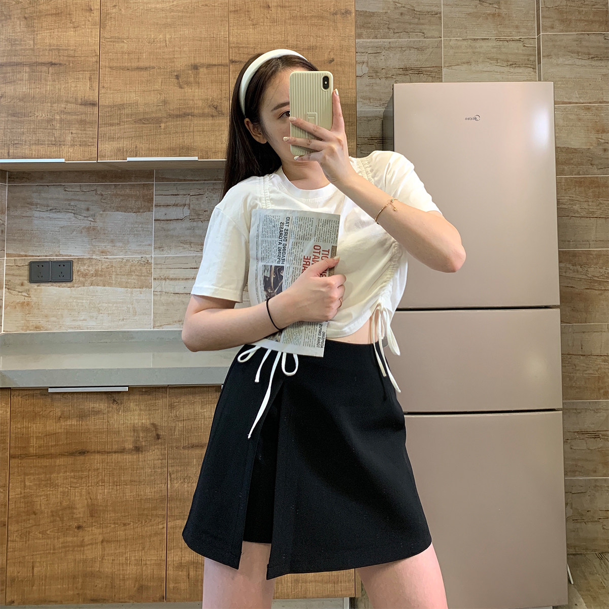 Big Deer Studio Weight Customized Double-drawn Top T-Shirt Summer New Loose Skin Short Sleeve Costume