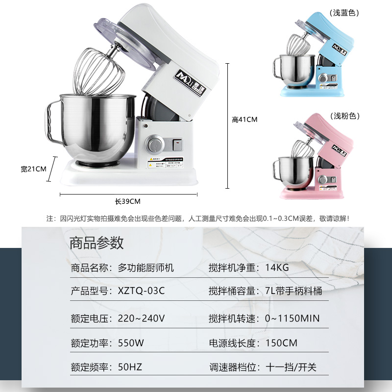 Maggie multi-functional chef machine household cake egg beater 7L commercial fresh milk machine small and noodle machine kneading machine