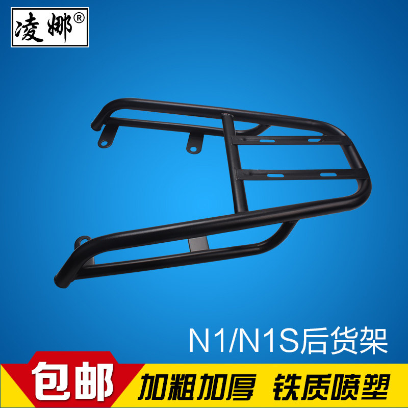 N1N1S round tube rear shelves - black iron add double button tail box - dumb tail box - white double buckle tail box - blue N1S rear shelf black add double button black tail