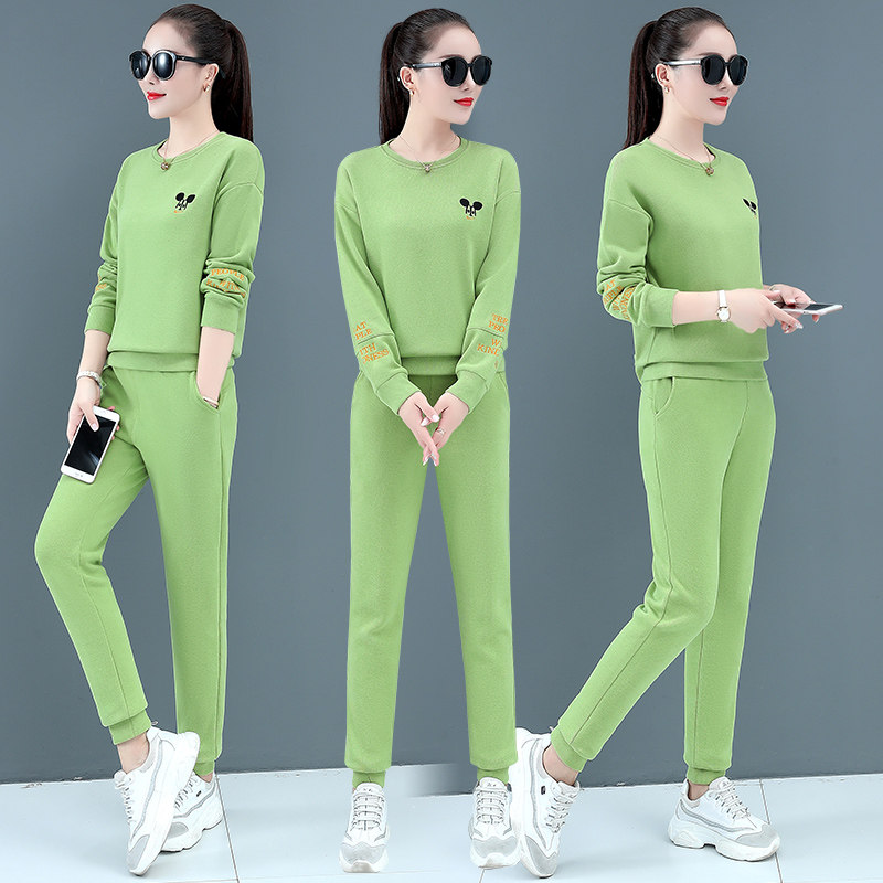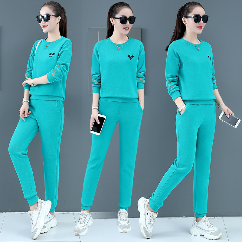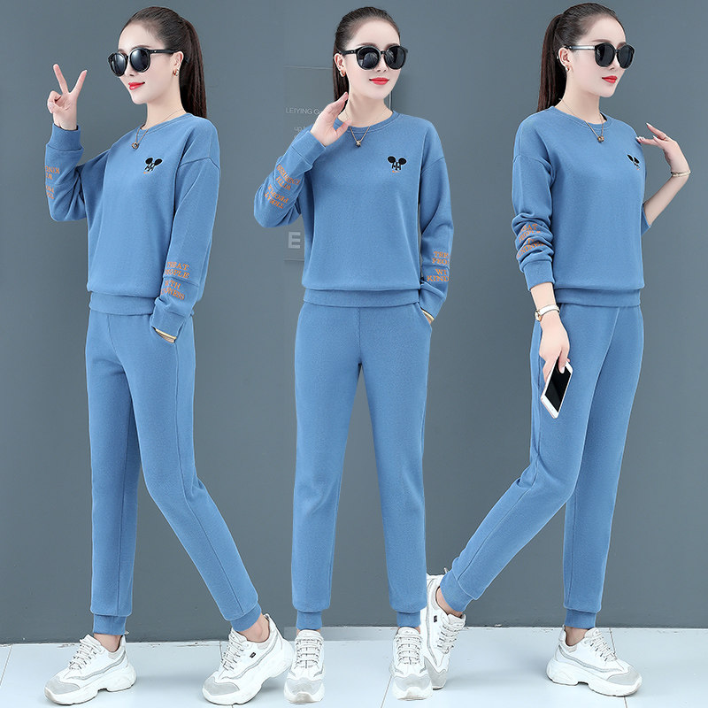 The round collar sportswear suit women in autumn 2020 new knitted long sleeve loose casual clothes female autumn two sets