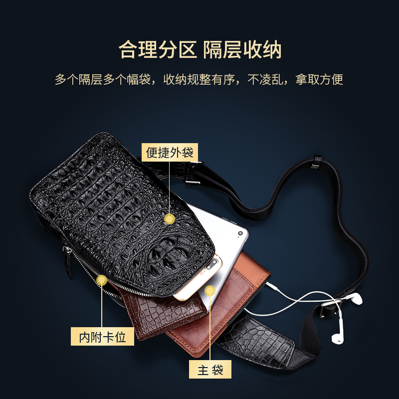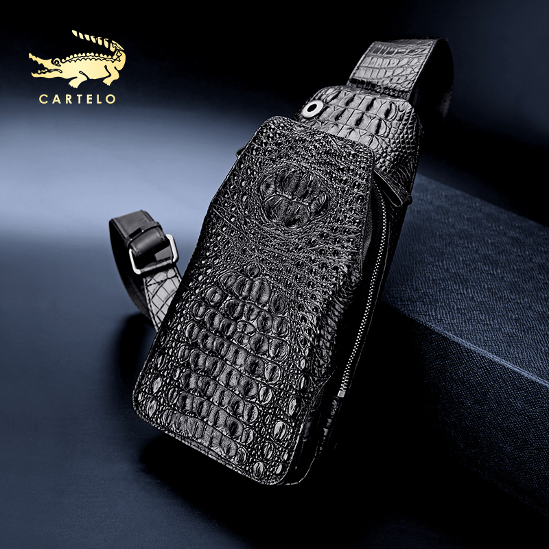 Cartelo Crocodile Leather Chest Bag Men Messenger Leather Versatile Shoulder Bag Large Capacity Casual Men's Backpack