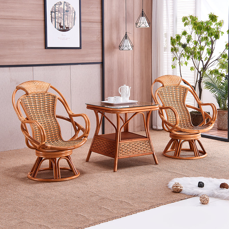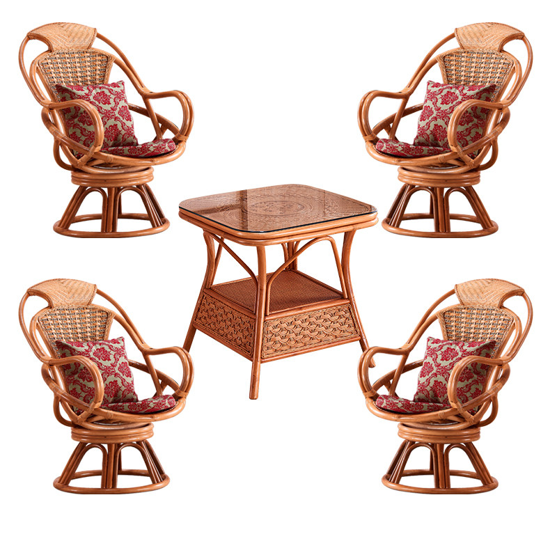 Two swivel chairs Bead table (comfortable waist protection) three pieces of two swivel chairs Fu character table (comfortable backrest) three pieces of real rattan swivel chairs (send cushion and pillow) one piece of bead table (send tempered glass) One piece of single swivel chair Beads