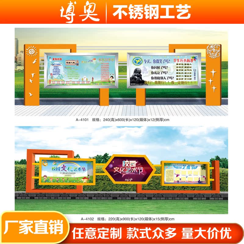 Stainless steel bulletin board hanging wall bulletin board campus window antique paint bulletin board outdoor billboard display stand