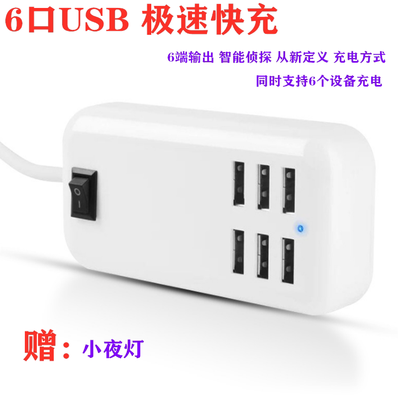 One tug of six chargers USB plug phone punching electric head Multiple lipstick applies Apple Huawei mobile phone Multi-function platoon