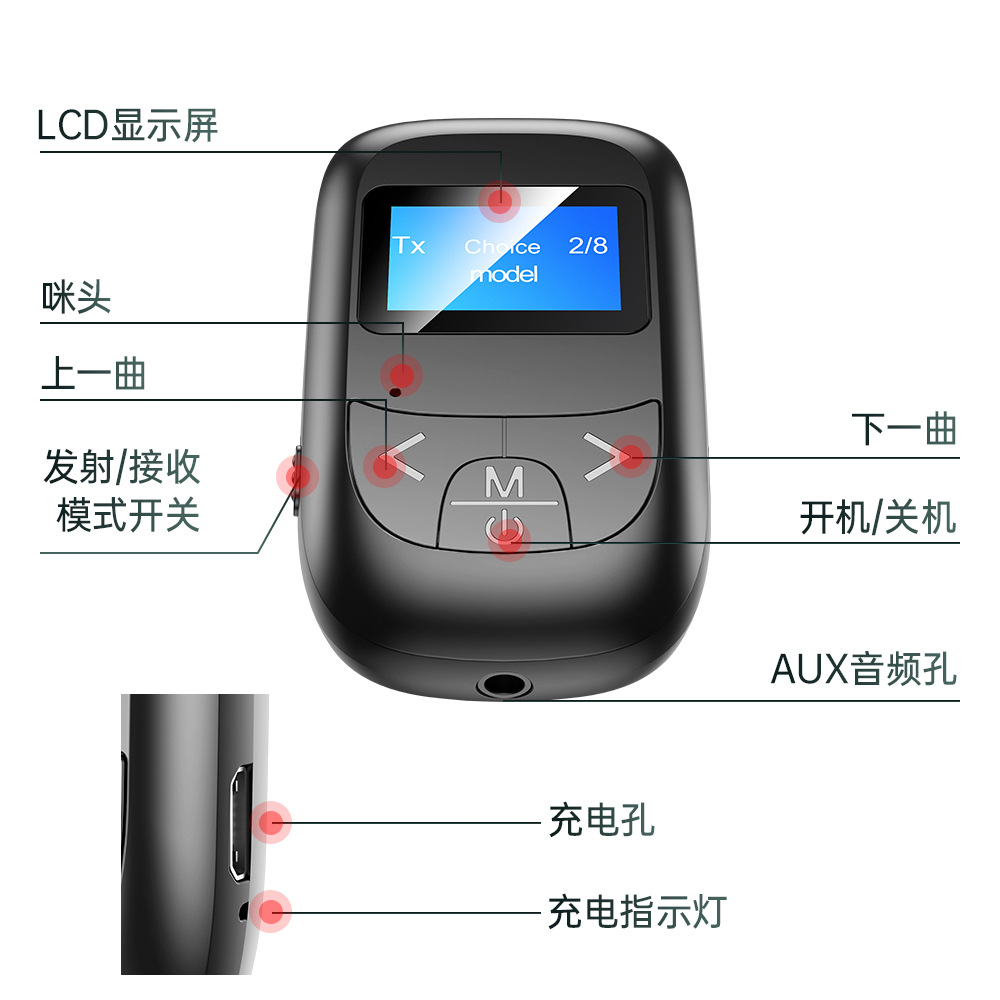Belt-screen Bluetooth 5 0 audio emission receiving call three-in-one TV computer projection free of drive accessories